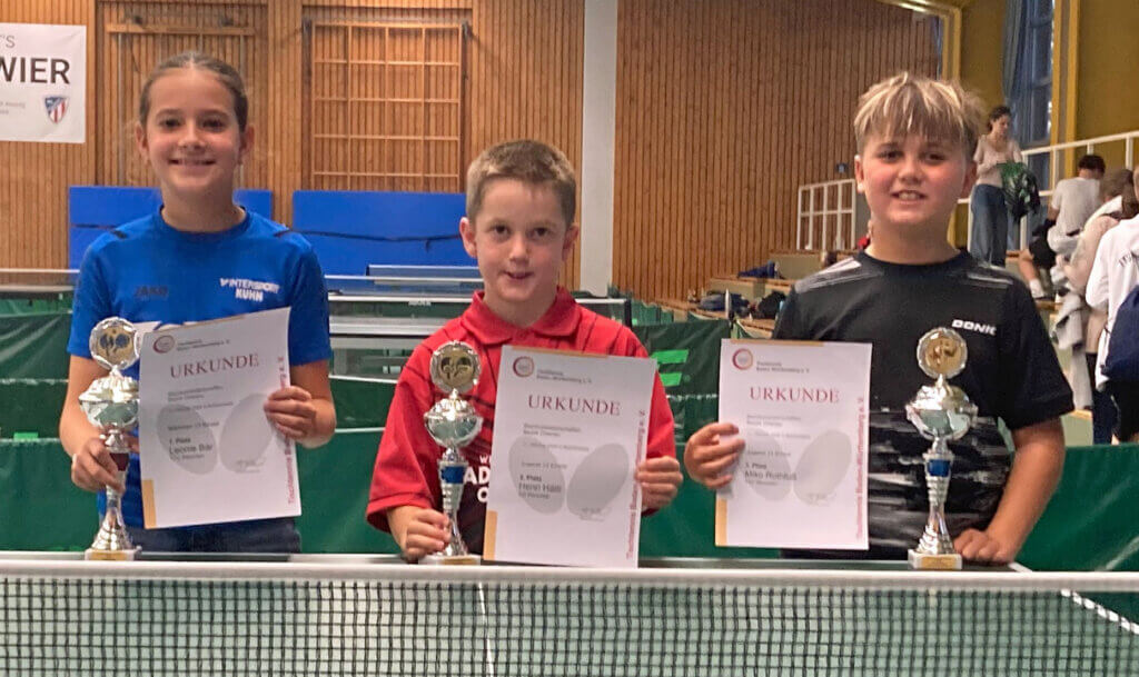 Beide Nachwuchstalente des TTC Renchen dominierten bereits ohne Niederlage in der Gruppenphase und kämpften sich mit starken Auftritten in der Ko-Runde bis ins Finale durch. In den Endspielen bestätigten Leonie und Miko schließlich ihre überragende Form. Miko Rothfuß setzte sich dabei knapp in fünf hart umkämpften Sätzen gegen Henri Hätti (SG Renchtal) durch, während Leonie Bär deutlich in drei Sätzen gegen Nele Gütle (TTC Ebersweier) gewann. Beide TTC-Talente krönten somit ihre guten Leistungen jeweils mit dem Bezirksmeistertitel.